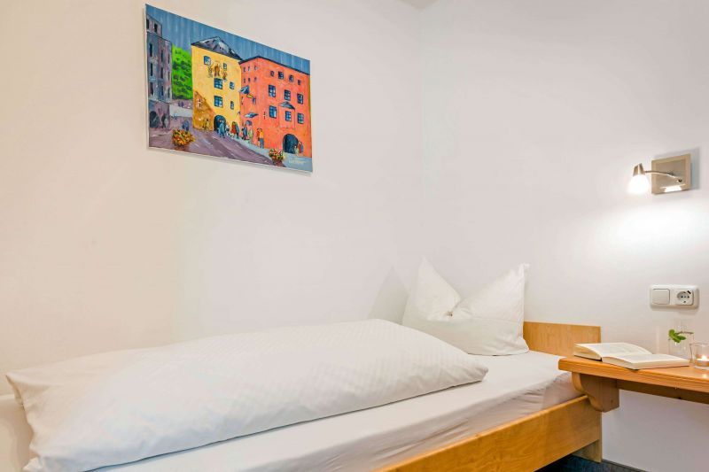 Bei uns können Sie Ihren Urlaub in liebevoll eingerichteten und rauchfreien Ferienwohnungen oder im Einzelzimmer verbringen. Die Unterkünfte verteilen sich auf das Appartementhaus und das Gästehaus, in dem auch der Aufenthaltsraum, der Billardraum und ein Hobbyraum mit einer Tischtennisplatte und Fitnessgeräten liegen. Das Einzelzimmer 12 - Primel befindet sich im zweiten Stock des Gästehauses und bietet Platz für 1 Person.
