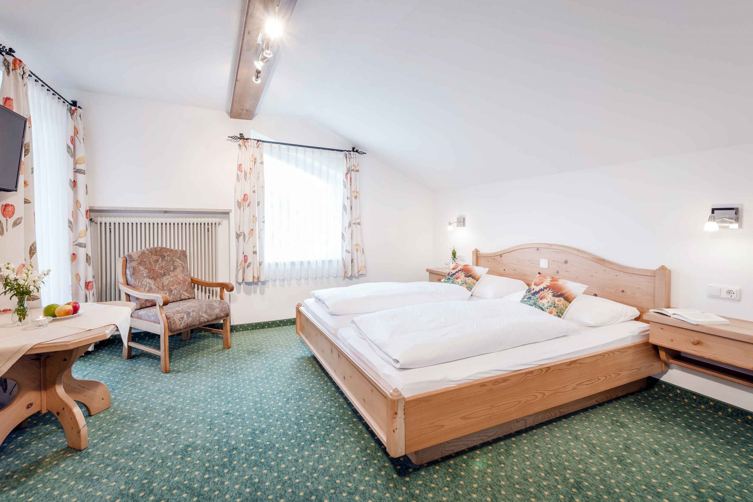 Bei uns können Sie Ihren Urlaub in liebevoll eingerichteten und rauchfreien Ferienwohnungen oder im Einzelzimmer verbringen. Die Unterkünfte verteilen sich auf das Appartementhaus und das Gästehaus, in dem auch der Aufenthaltsraum, der Billardraum und ein Hobbyraum mit einer Tischtennisplatte liegen. Die Ferienwohnung 10 – Margerite befindet sich im zweiten Stock des Gästehauses und bietet Platz für bis zu 2 Personen.