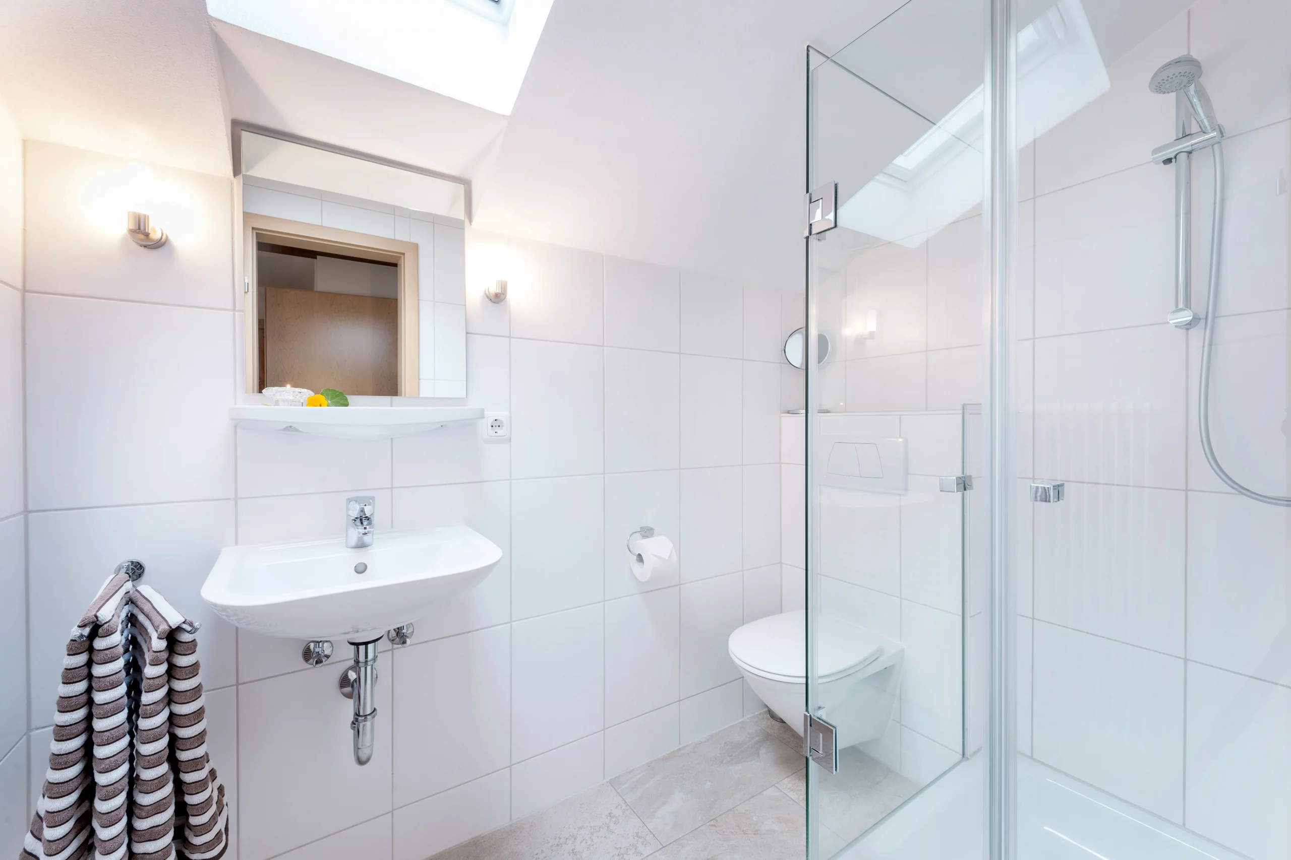 • 1 Badezimmer mit Dusche, WC, Kosmetikspiegel, Föhn