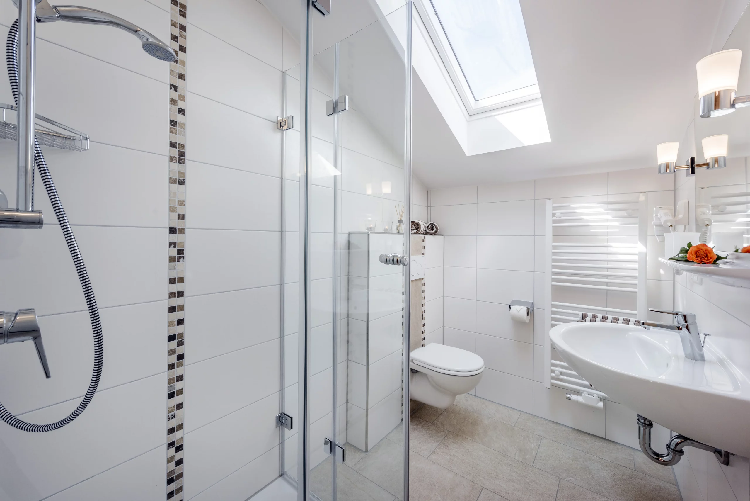 • 1 Badezimmer mit Dusche und WC, Föhn